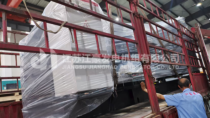 一臺1000kW康明斯柴油發電機組發貨,我公司工程師對機組進行了全面的出廠前檢測調試后,各項指標符合國家標準,下圖為機組出廠現場