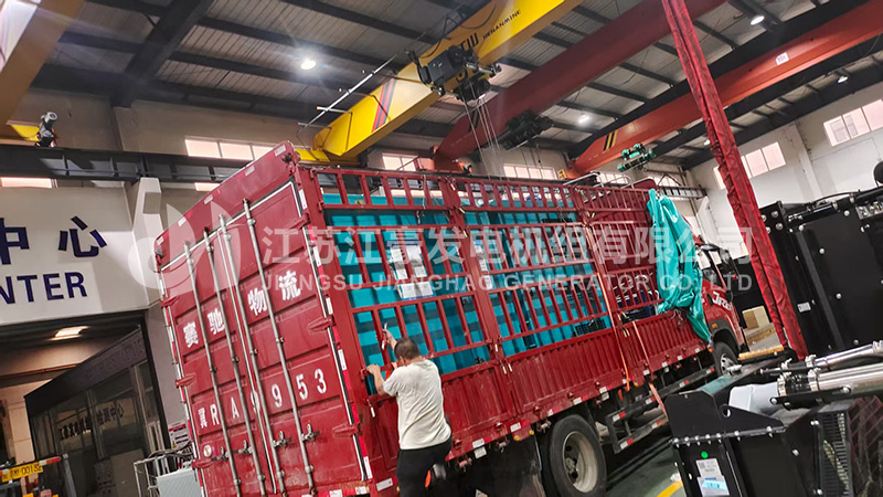 多臺多型柴油發電機組發貨,我公司工程師對機組進行了全面的出廠前檢測調試后,各項指標符合國家標準,下圖為機組出廠現場